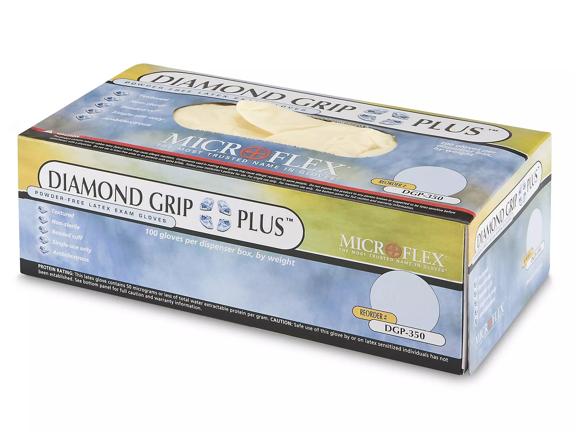 MicroFlex® Diamond Grip Plus™ Powder-Free White Latex Exam Gloves (100/bx)
